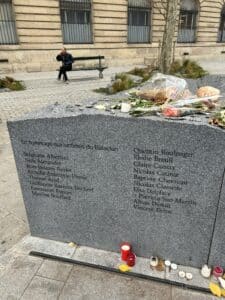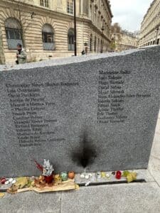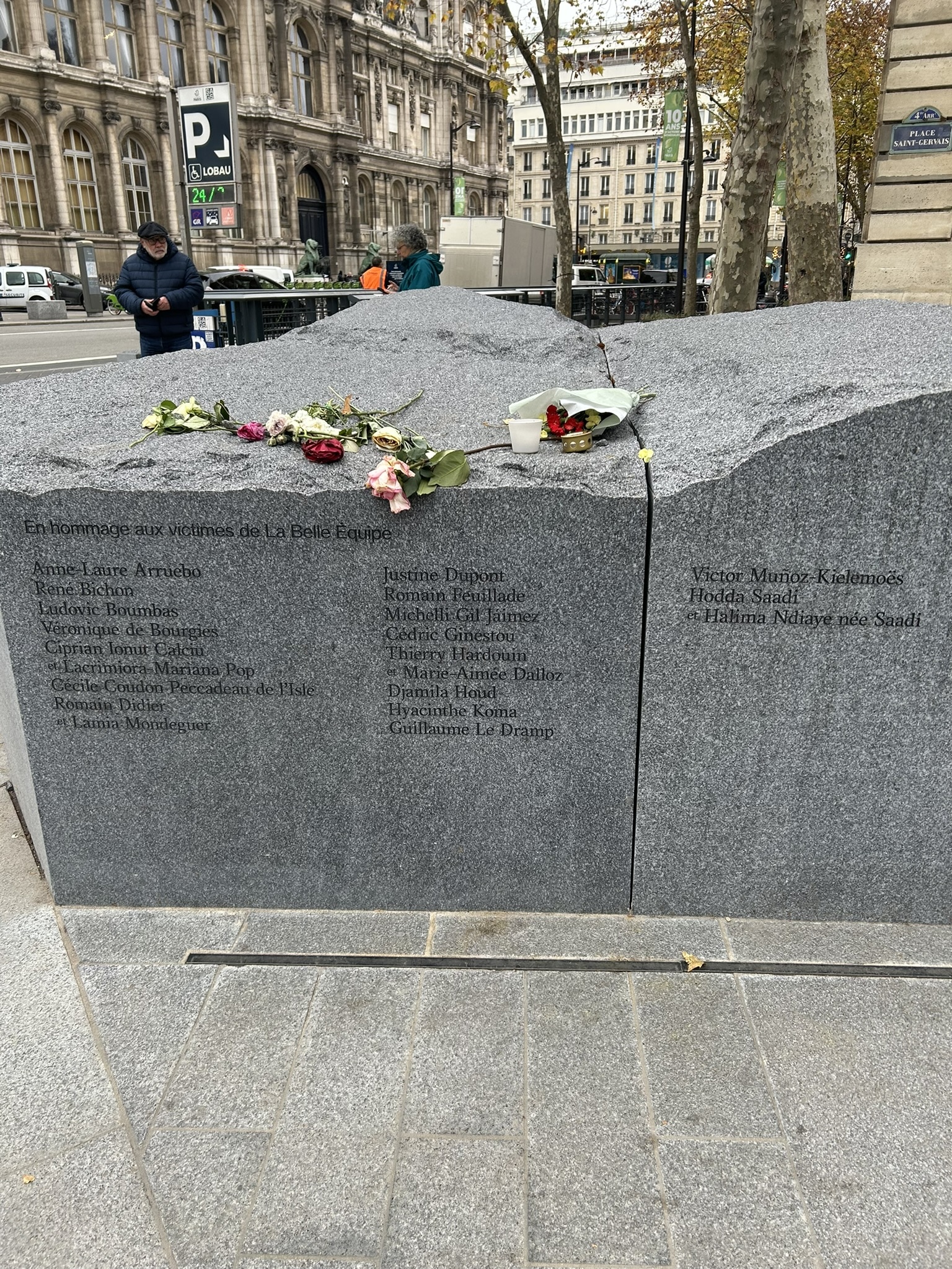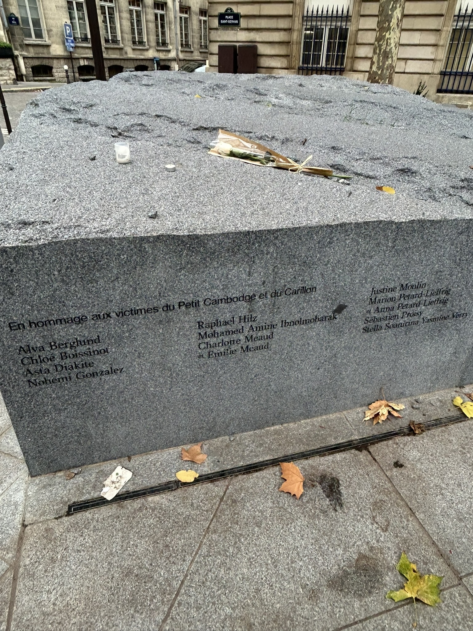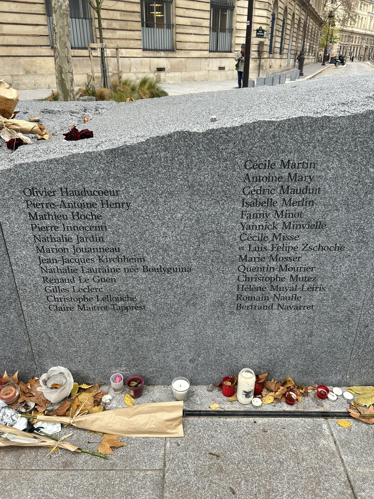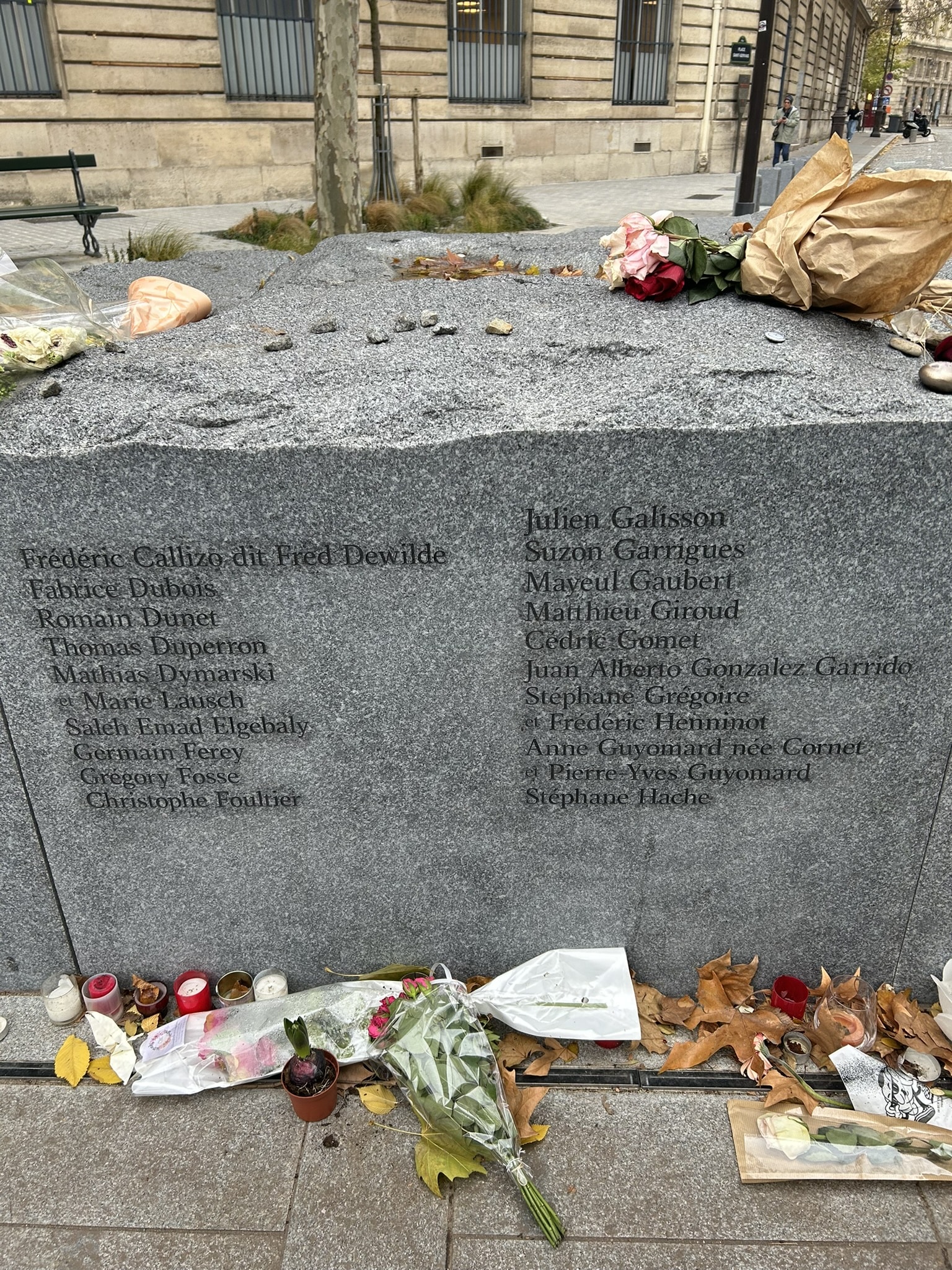 Chaque site touché ce soir-là est évoqué par des allées et symbolisé par une stèle gravée des noms des disparus