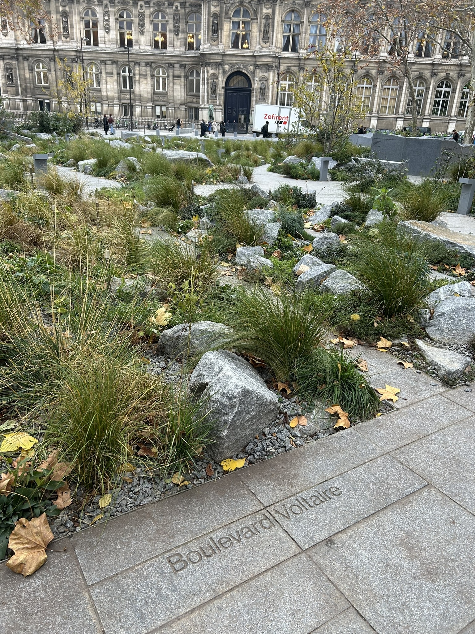 Le jardin est organisé selon les plans des six sites lieux d’attentats : le Stade de France ; le restaurant Le Petit Cambodge et le bistrot Le Carillon ; la brasserie La Bonne Bière et le restaurant Casa Nostra ; Le Bataclan ; le Bar La Belle Équipe ; le bistrot-restaurant Comptoir Voltaire.